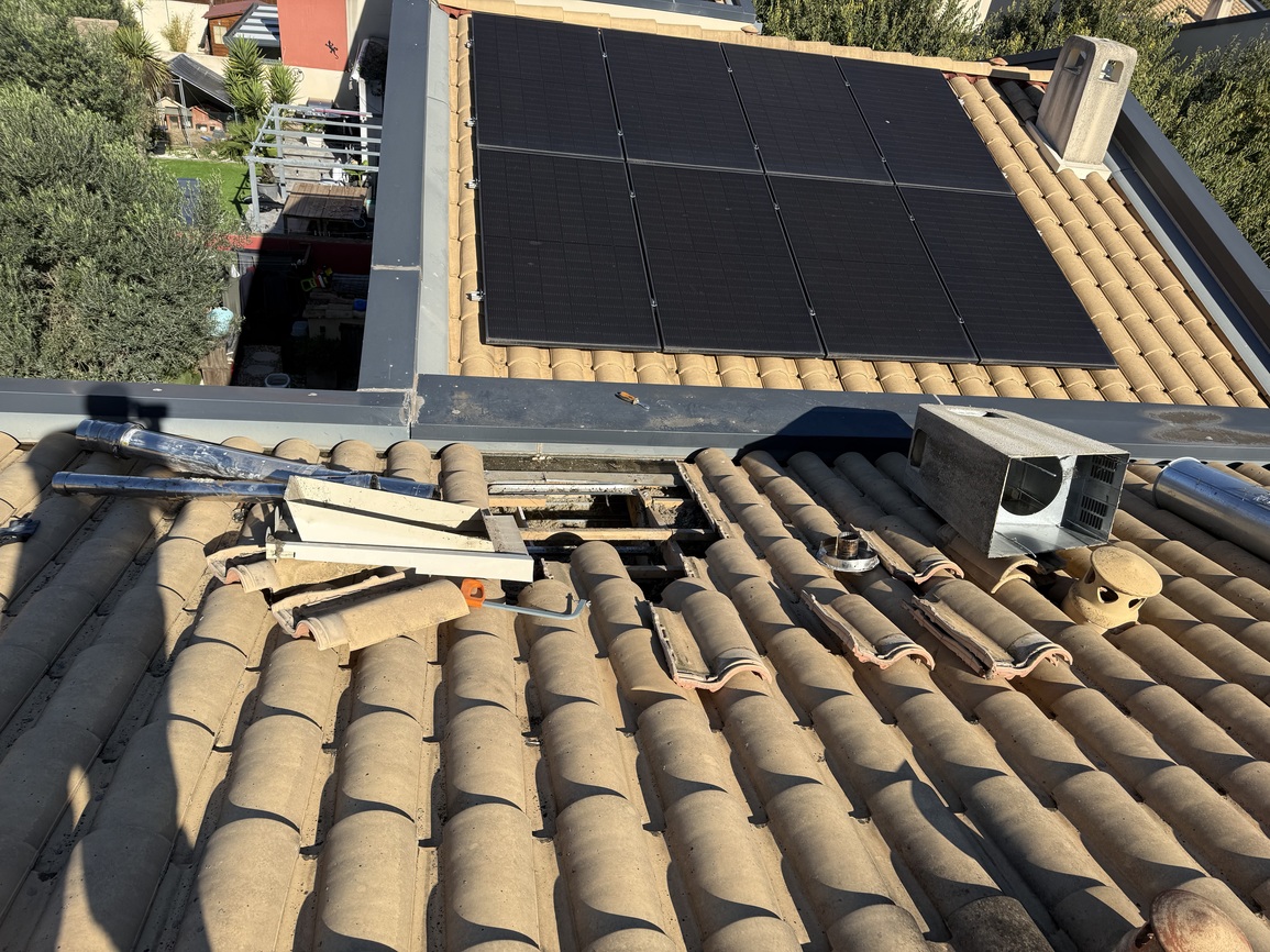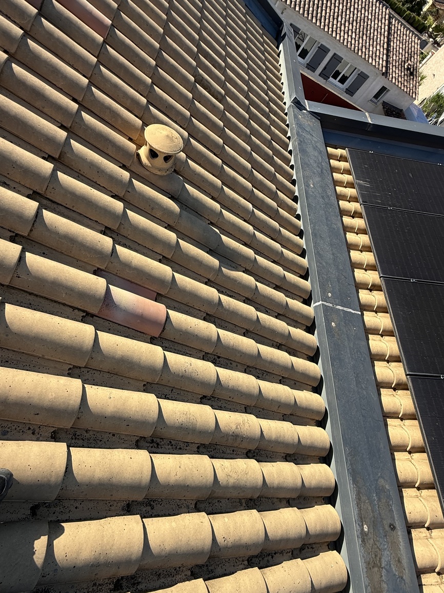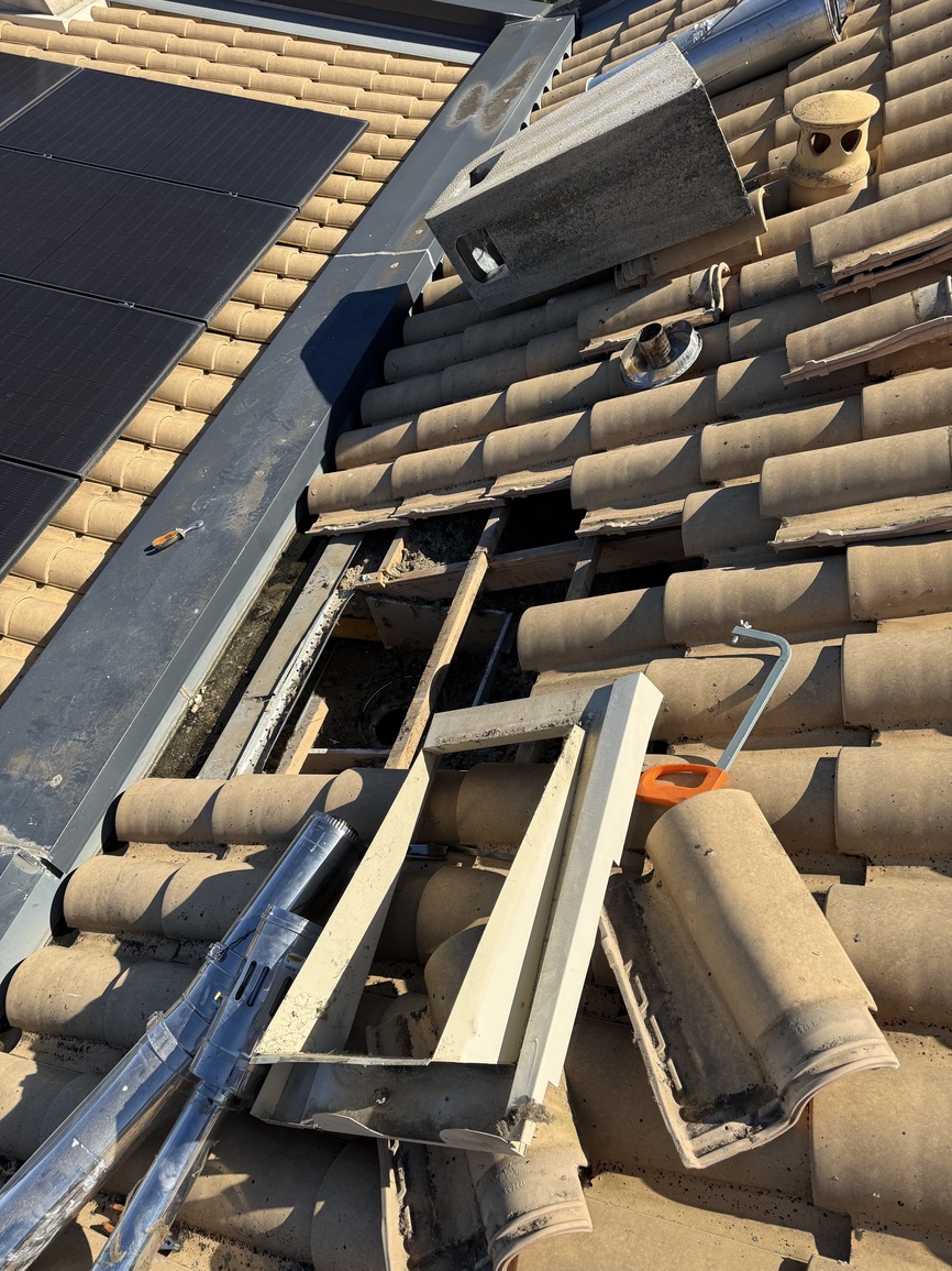 Démontage d’une cheminée, remise en place des tuiles ainsi que nettoyage de la gouttière